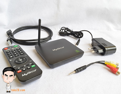 Android Kitkat 4.4, Memory 8Gb, RAM 1Gb, Wifi 802.11 b/g/n antena external, 2 slot USB, Lan Port, micro SD up to 32Gb, RCA Out.