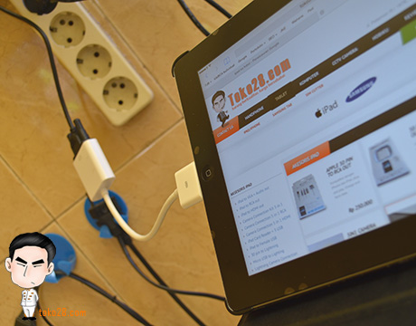 Konektor iPad 30 Pin yang cocok untuk presentasi dengan proyektor. Plug and Play, tancapkan adaptor ini ke iPad, sambungkan kabel ke VGA dan layar iPad akan muncul ke projector dengan sistem miror.